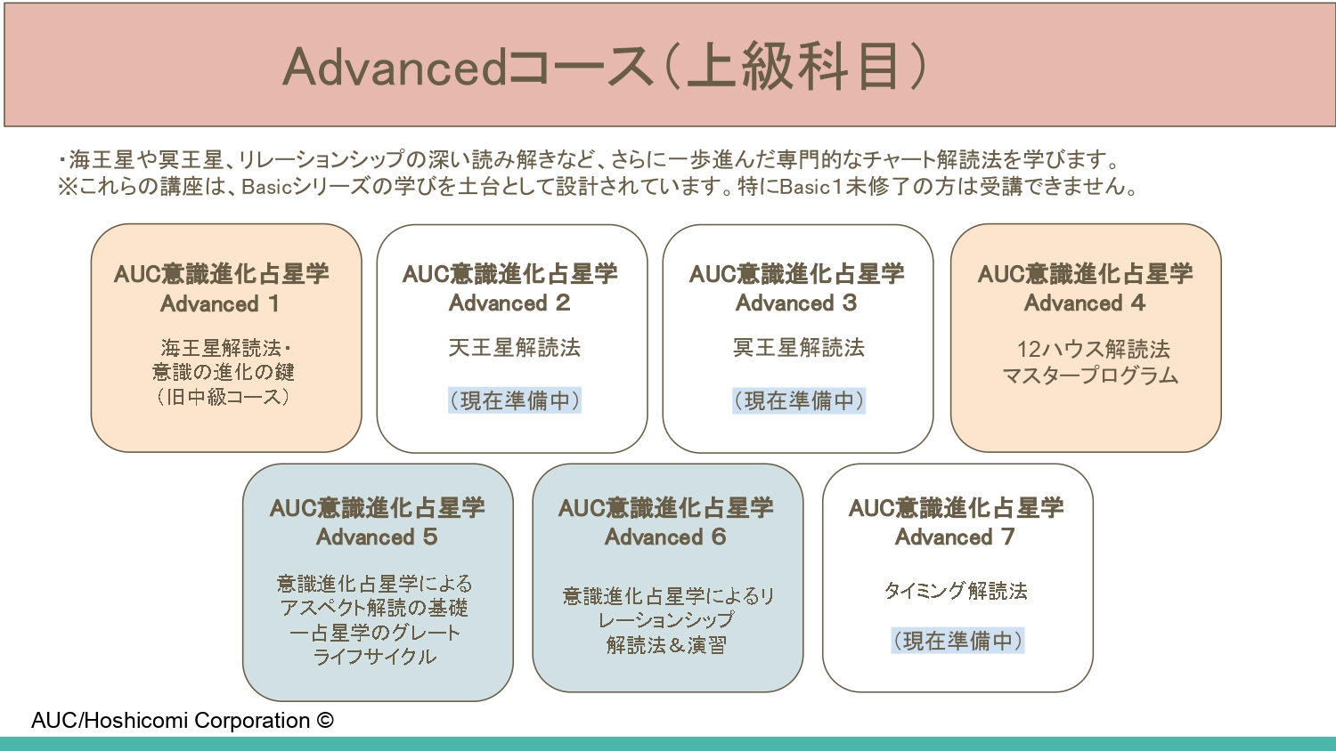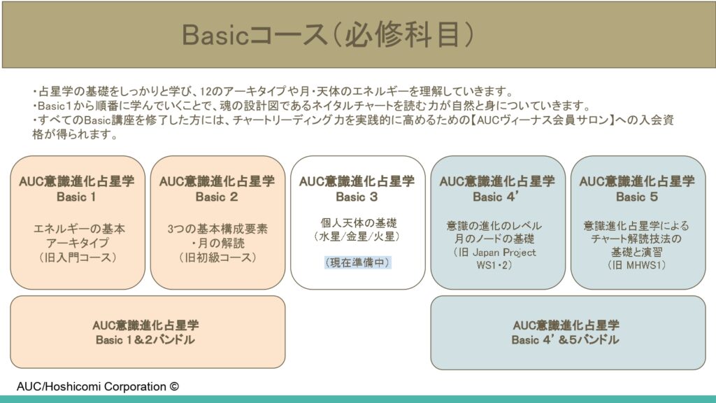 AUC(Academy of Universe Code)では、意識進化占星学に基づいた豊富な講座を提供しています。こちらでは、講座の全貌とその特徴を簡潔にご紹介いたします。