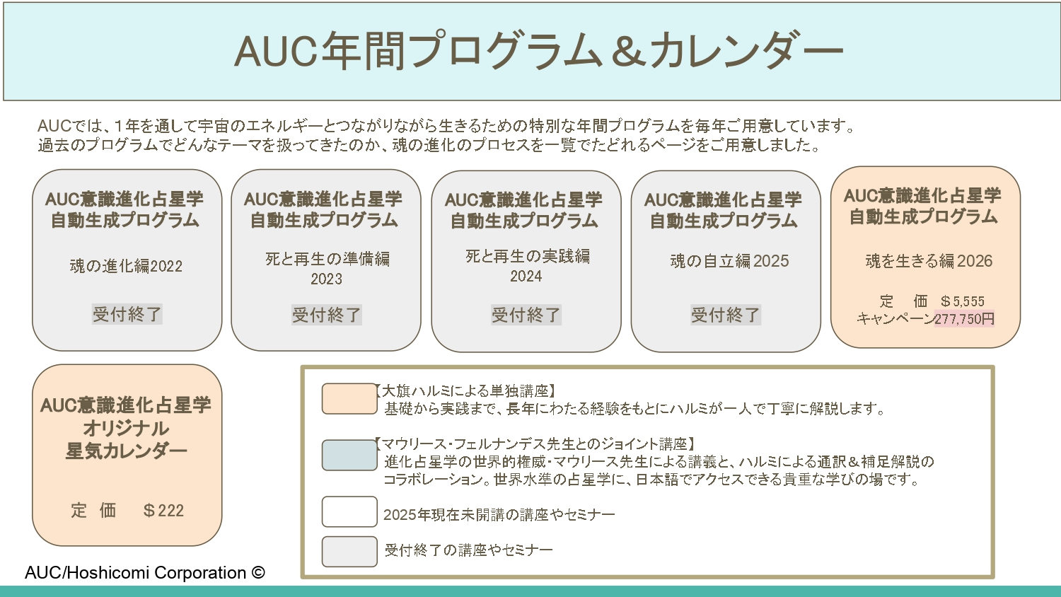 最新の年間プログラムは、AUCのLINEやメルマガで優先的にご案内しています。ご興味のある方は、ぜひLINEまたはメルマガにご登録ください。